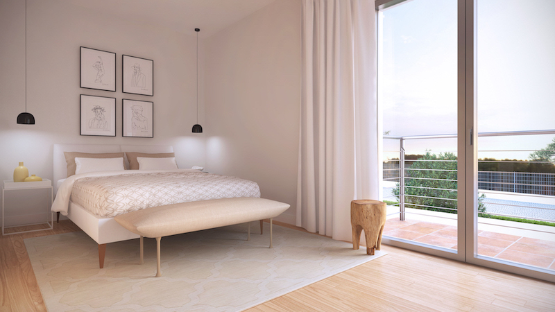 As casas são bioclimáticas, asseguram conforto térmico e eficiência energética, reduzindo a necessidade de climatização artificial. A arquitetura privilegia a iluminação natural, a ventilação cruzada e o uso de materiais nobres e sustentáveis, como a cortiça, que tornam as paredes ‘respirantes’ e melhoram a qualidade do ar interior.
