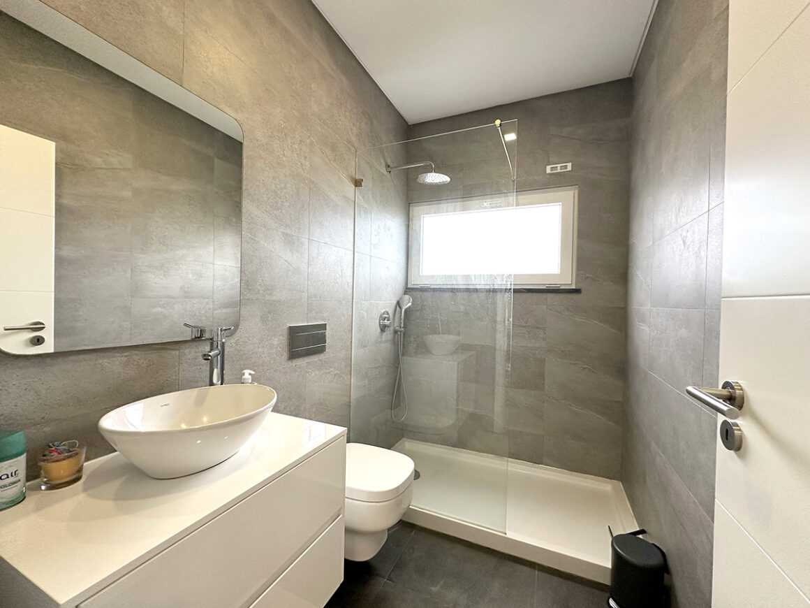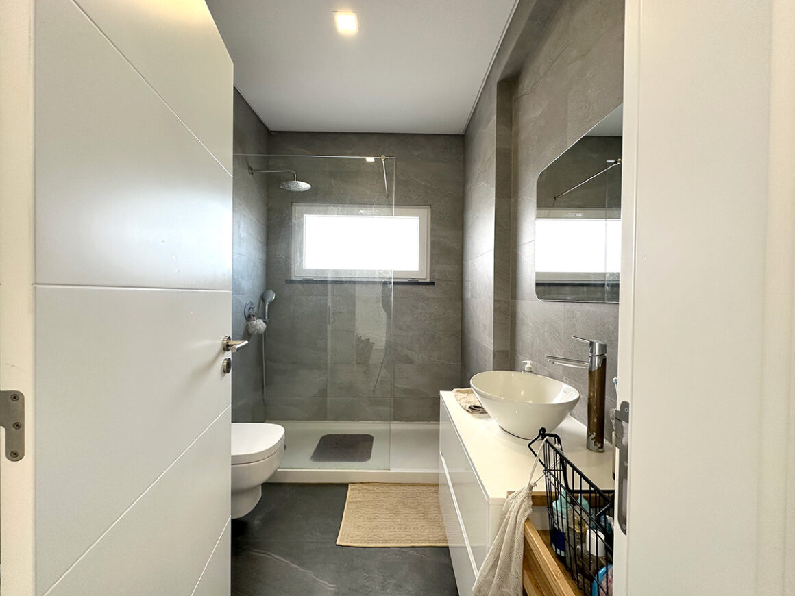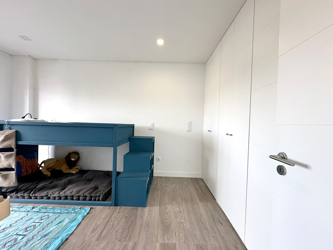 A área privada é composta por 4 quartos com roupeiros embutidos, distribuídos pelos dois pisos. No rés-do-chão, existe um quarto com acesso a uma casa de banho completa, ideal para visitas ou para maior comodidade familiar. No primeiro piso, encontram-se dois quartos adicionais com casa de banho de apoio e uma suite completa, proporcionando um espaço mais reservado e independente. A garagem completa a oferta de comodidade, com espaço para estacionamento ou arrumação adicional.