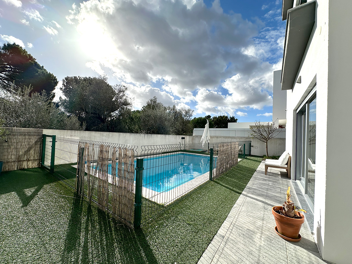 Moradia T4 em Vila Nogueira de Azeitão, situada numa zona residencial tranquila, com vista desafogada para a Serra da Arrábida.