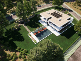A sala e a cozinha integram-se num conceito open space com 80m2, permitindo uma circulação fluida e um uso versátil das áreas comuns. A cozinha será equipada com soluções de gama elevada, concebidas para garantir durabilidade e eficiência no uso diário. Para reforço do conforto, a moradia inclui piso radiante, ar condicionado central ou VMC / Ventilo convetores e sistema de vigilância por câmaras. A piscina dispõe de bomba de calor, contribuindo para uma utilização mais alargada ao longo das estações.