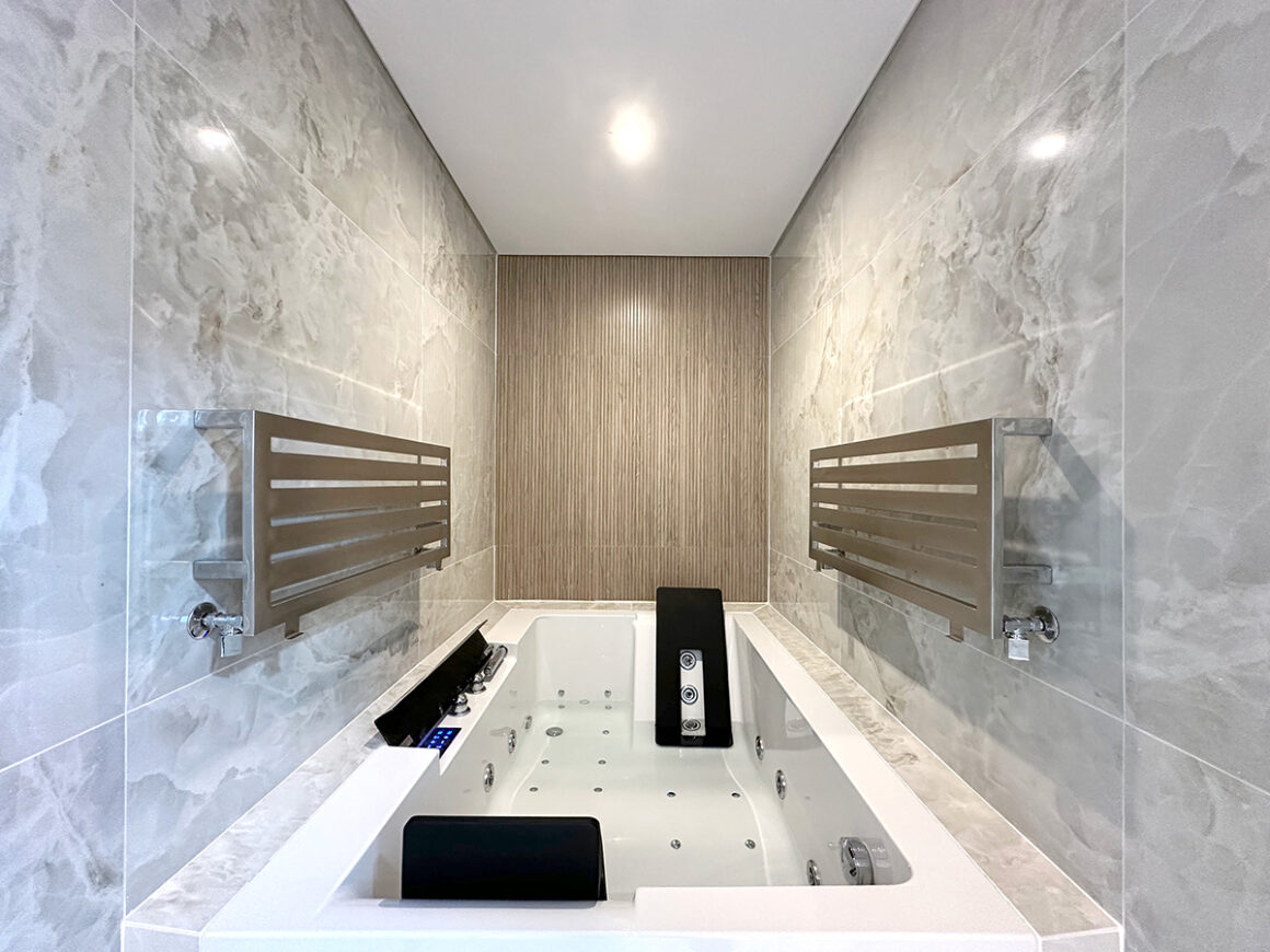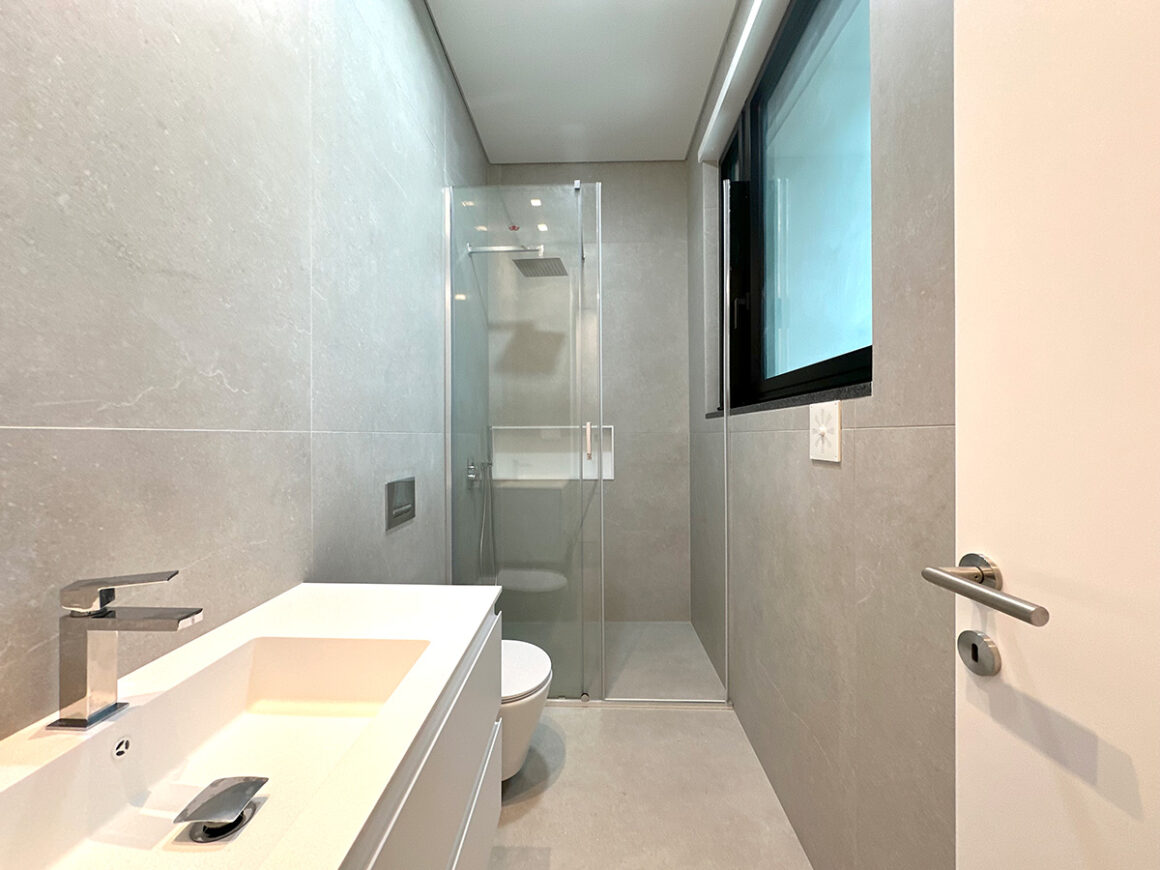 No piso superior, cinco generosas suítes, todas com varandas privadas e vistas para a envolvência verde, garantem um retiro pessoal de conforto e tranquilidade. A Master Suite destaca-se pelo seu espaçoso walk-in closet, uma área de estar privativa e uma varanda ampla, ideal para momentos de contemplação. Os materiais nobres e acabamentos de alta qualidade estão presentes em todos os espaços, sublinhando o compromisso com a excelência. Tudo integrado no conceito casa inteligente, controlado através de aplicação e acionado de qualquer lugar do planeta.