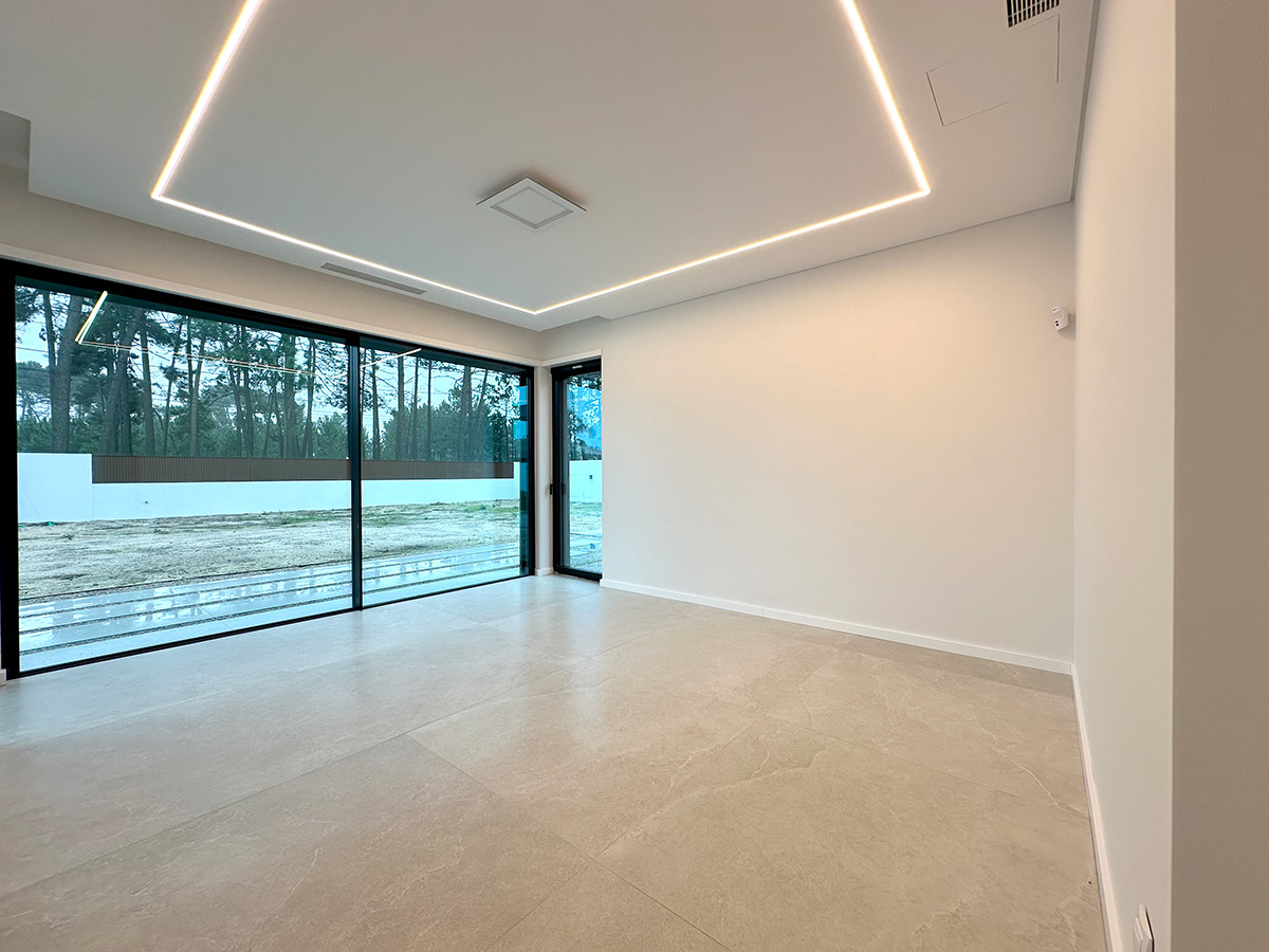 Com uma área bruta privativa de 500 metros quadrados, distribuída por dois pisos, a moradia foi projetada para promover uma ligação contínua com o exterior, privilegiando a luz natural e as amplas vistas verdes. No espaço exterior, encontrará uma elegante piscina aquecida, um jacuzzi relaxante, zona de lounge, área para ginásio e uma área gourmet completa com churrasqueira, ideal para receber família e amigos em ambientes de lazer e convivência.